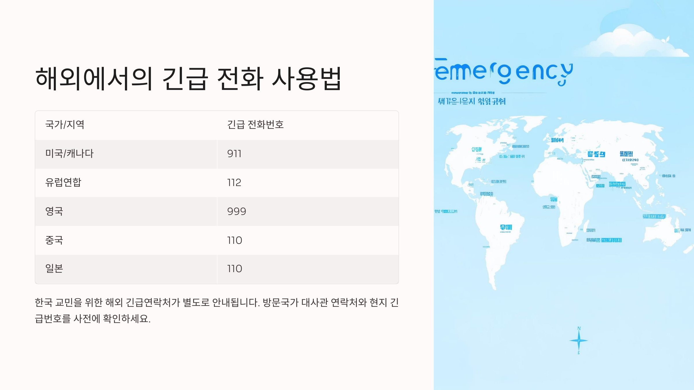 🌍 주요 국가 긴급 번호 정리표 📟